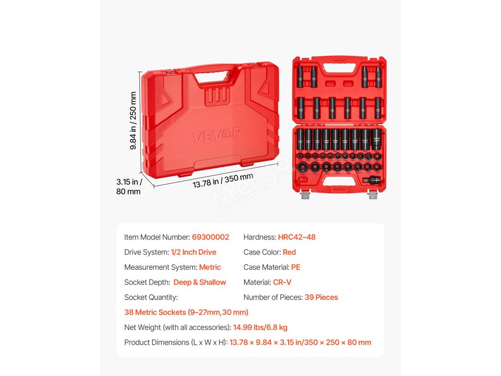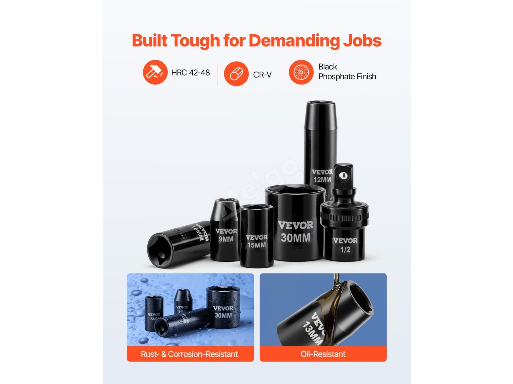 Naše sada rázových nástrčných hlavic nabízí řadu nástrojů vhodných pro opravy automobilů různých značek. Vyrobeno z vysokopevnostní legované oceli CR-V pro vynikající odolnost proti nárazu a dlouhou životnost. Přenosný kufřík navíc udrží vaše nářadí v pořádku a usnadní vám každou práci.
