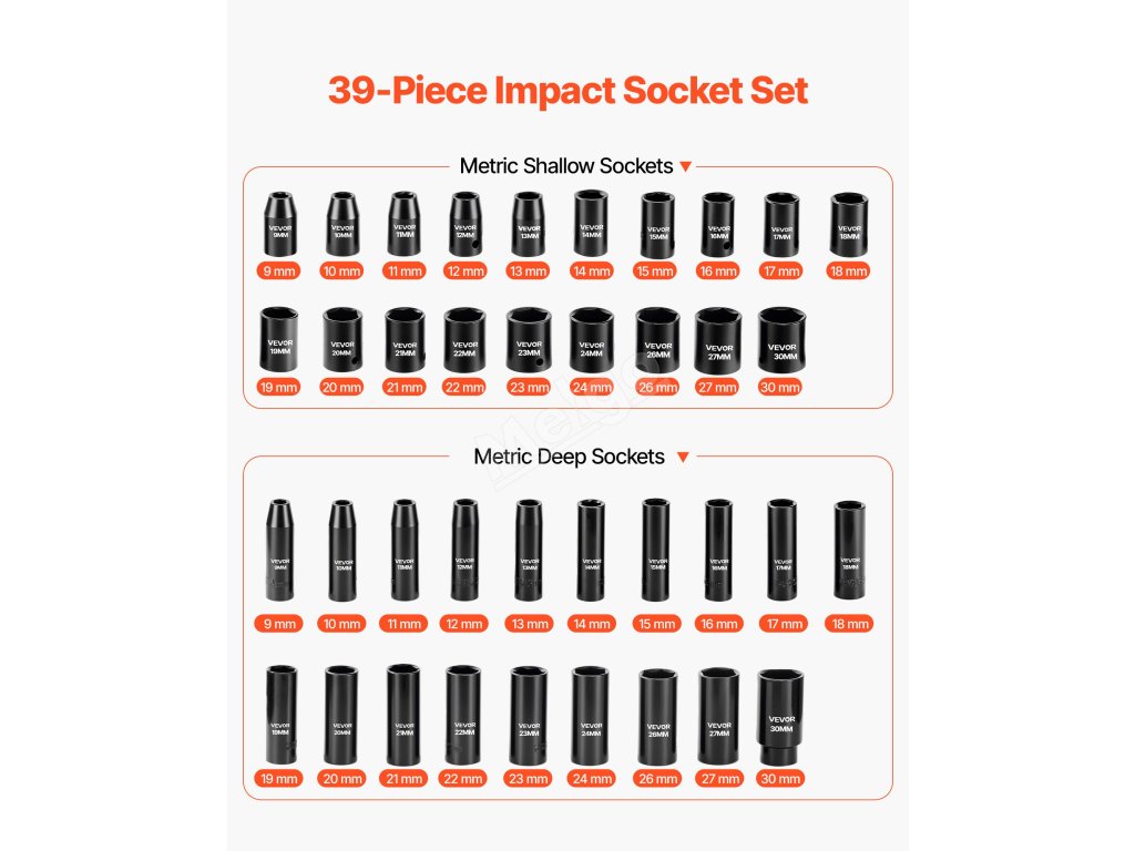 | Množstvo zásuviek | 38 metrických nástrčiek (9-30 mm) |