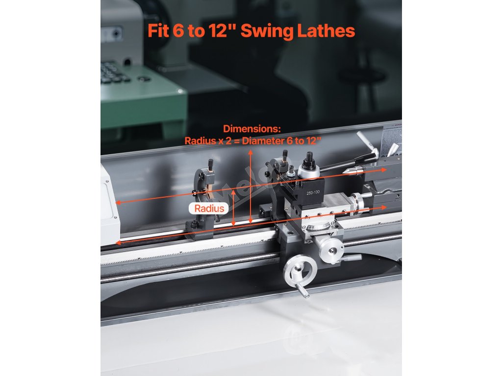 Tento rychlovýměnný držák nástrojů pro minisoustruhy je vhodný pro soustruhy s kyvnou hlavou 6 až 12 palců. Pojme 3/16" až 1/2" stopky pro soustružení, soustružení a vyvrtávání nadměrných rozměrů, 5/8" a 3/4" pro těžké vyvrtávání, 1/2" břity pro upichování a 3/4 x 3/8 x 1/4" břity pro bodování, čímž splňuje širokou škálu potřeb obrábění.