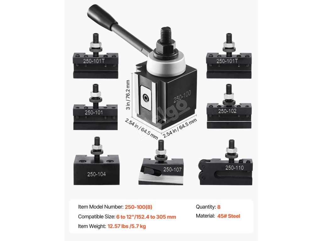 8dílná sada rychlovýměnných nástrojových sloupků, vhodná pro 6"-12" soustruhy