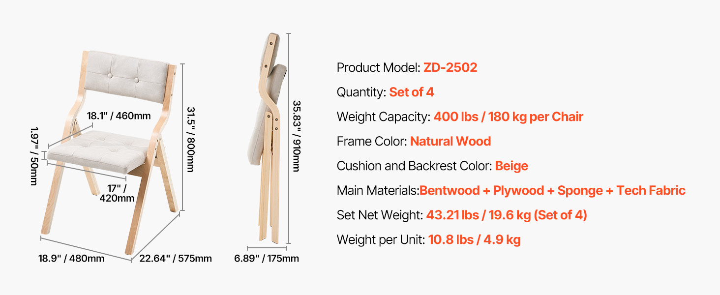 | Rozměry židle ve složeném stavu (DxŠxV) | 480 x 910 x 175 mm |