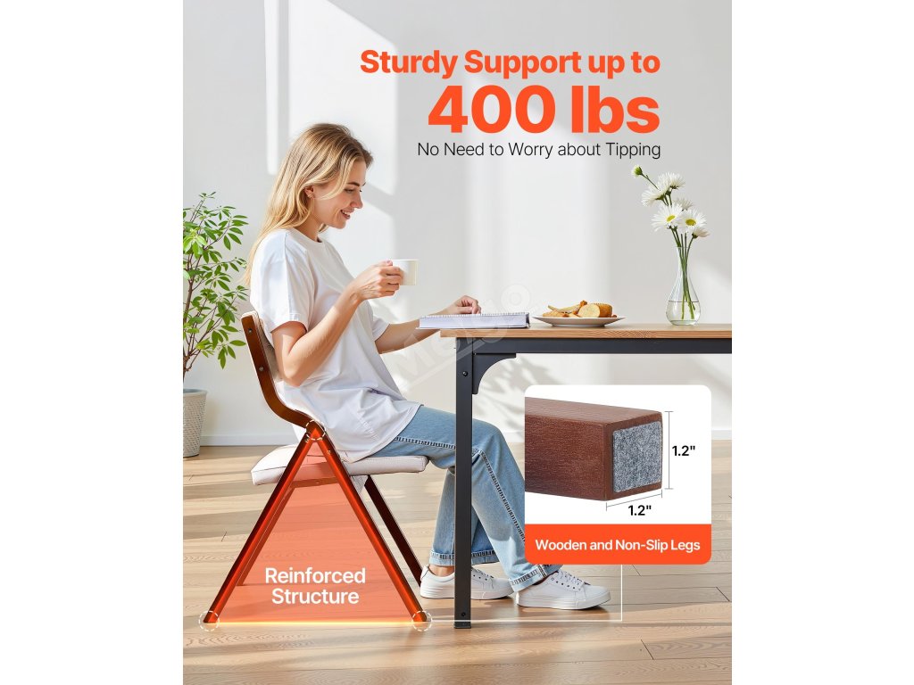 Naše dřevěné skládací židle unesou až 400 liber/180 kg a mají velké sedáky pro větší pohodlí. Díky snadnému skládání se pohodlně skladují a přenášejí.