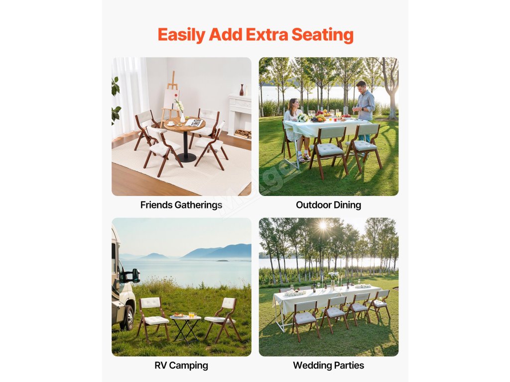 Díky skládací konstrukci se židle snadno přenáší a skladuje, takže je ideální pro další sezení na večírcích, schůzkách, setkáních a dalších akcích.