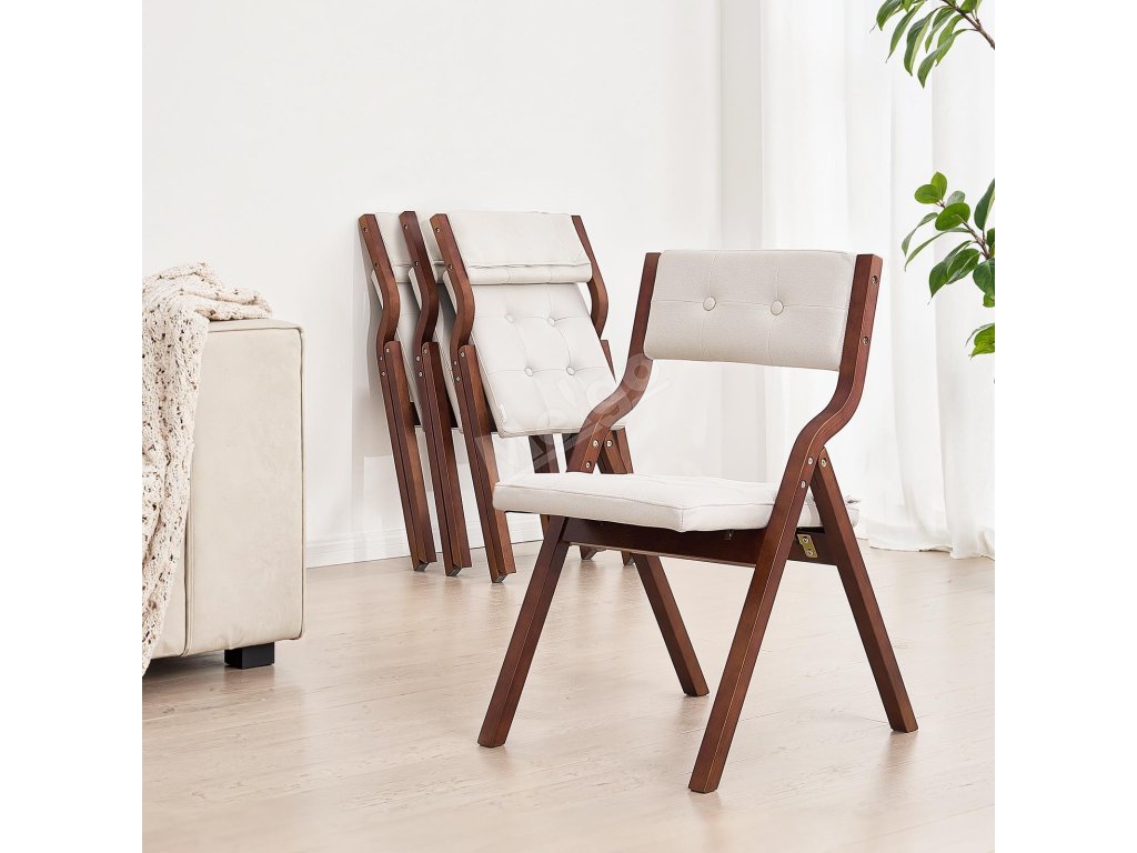 Skládací židle s polštáři mají spolehlivý rám z masivního dřeva s robustní trojúhelníkovou konstrukcí, která zajišťuje vysokou nosnost a dlouhou životnost.