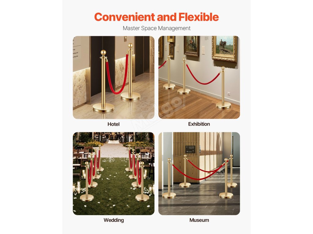 Od hotelů přes výstavy, svatby až po muzea - naše stojany nabízejí profesionální řešení pro kontrolu davu, které se hodí do různých prostředí a zajistí hladký a spořádaný chod davu, ať už ho potřebujete kdekoli.