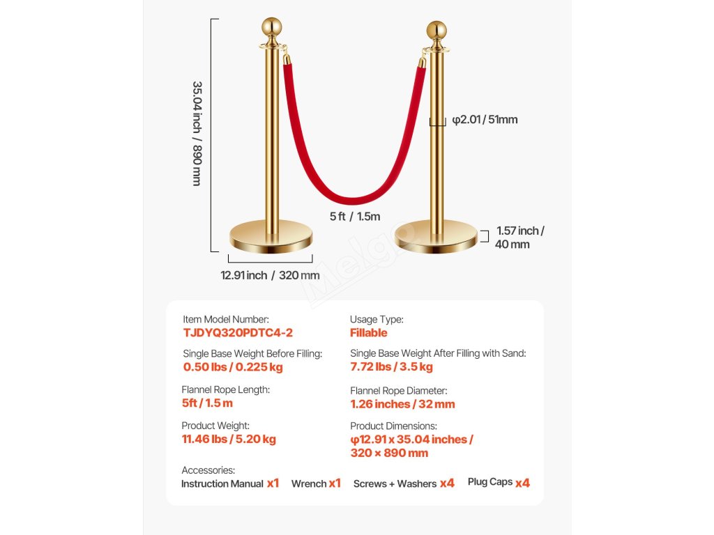 Každý sloupek je dodáván se sametovým lanem o délce 4,92 ft/1,5 m, takže si můžete snadno nastavit délku podle svých potřeb. Je to dokonalé řešení pro všechny vaše požadavky na řízení davu - rychle a snadno se přizpůsobí jakékoli akci.