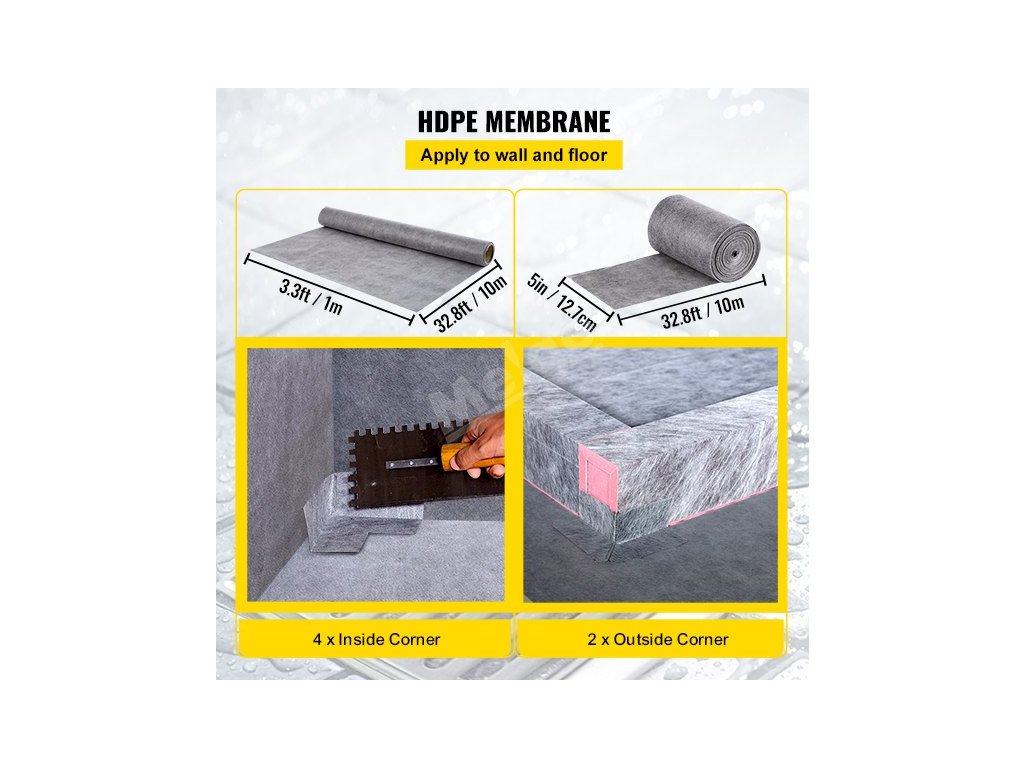 Sprchová vanička z pěny s vysokou hustotou je lehká a má tloušťku pouze 0,8''. Lze ji bez námahy umístit pod dlaždice a má vynikající vodopropustné vlastnosti. Vaničku si můžete také nařezat podle svých potřeb.