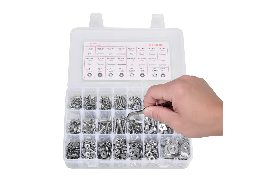 Sada šroubů, matic a podložek 720 ks nerez 6-32 8-32 10-24 1/4-20
