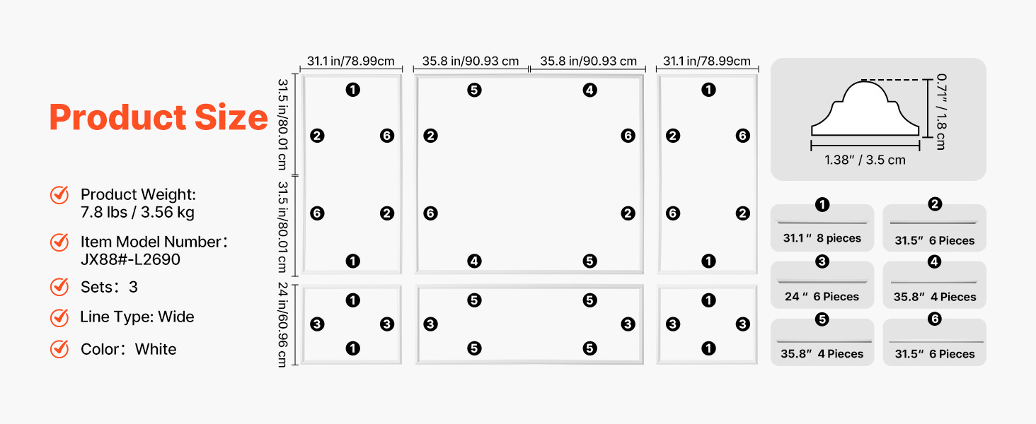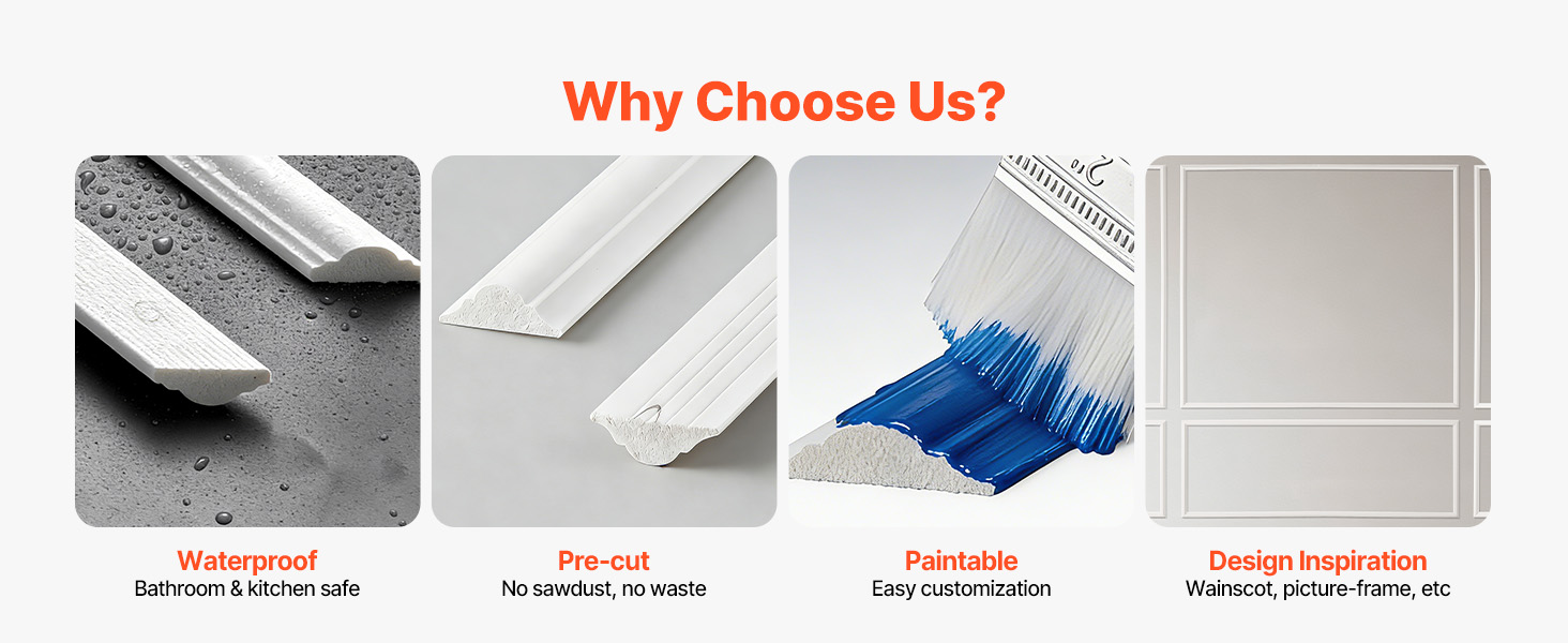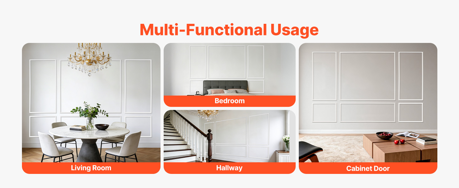Tato sada nástěnných lišt obsahuje předřezané lištové díly pro hladkou a snadnou instalaci. Ať už o víkendu renovujete pronajatý byt, nebo modernizujete svůj domov, každý detail je navržen tak, aby vám pomohl dosáhnout výsledků hodných časopisu na první pokus.
