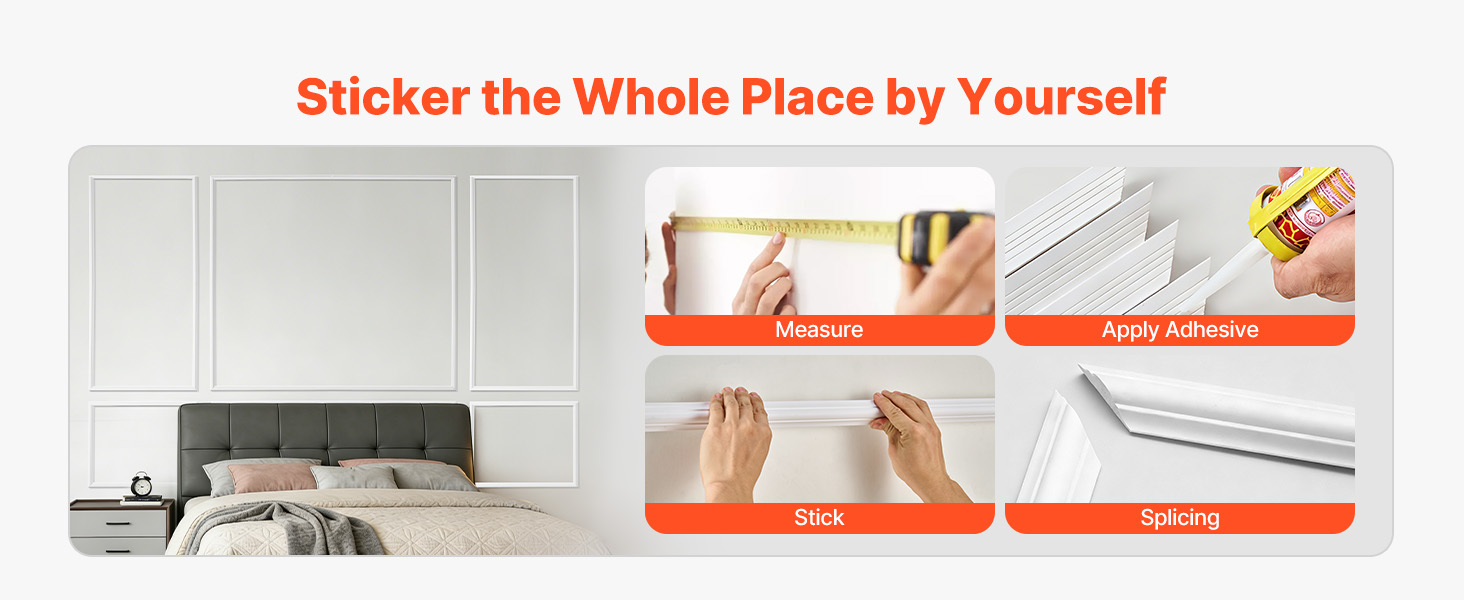 Proměňte svůj pokoj během okamžiku. Elegantní linie vytvářejí rafinované kontury, které dodají vašemu prostoru elegantní vzhled, aniž byste museli najímat stavební firmu, starat se o nepořádek nebo trávit týdny renovací. Tato sada nástěnných lišt vám pomůže dosáhnout ohromujících výsledků bez námahy.