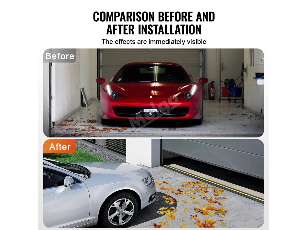 Naše sada těsnění garážových vrat je vyrobena z vysoce kvalitního PVC a odolá tlaku vozidla. Účinně blokuje prach, vodu a vítr a má vynikající odolnost proti povětrnostním vlivům (-40℉ až 284℉). Jeho instalace je rychlá a snadná a hodí se k různým garážovým a skladovým vratům.