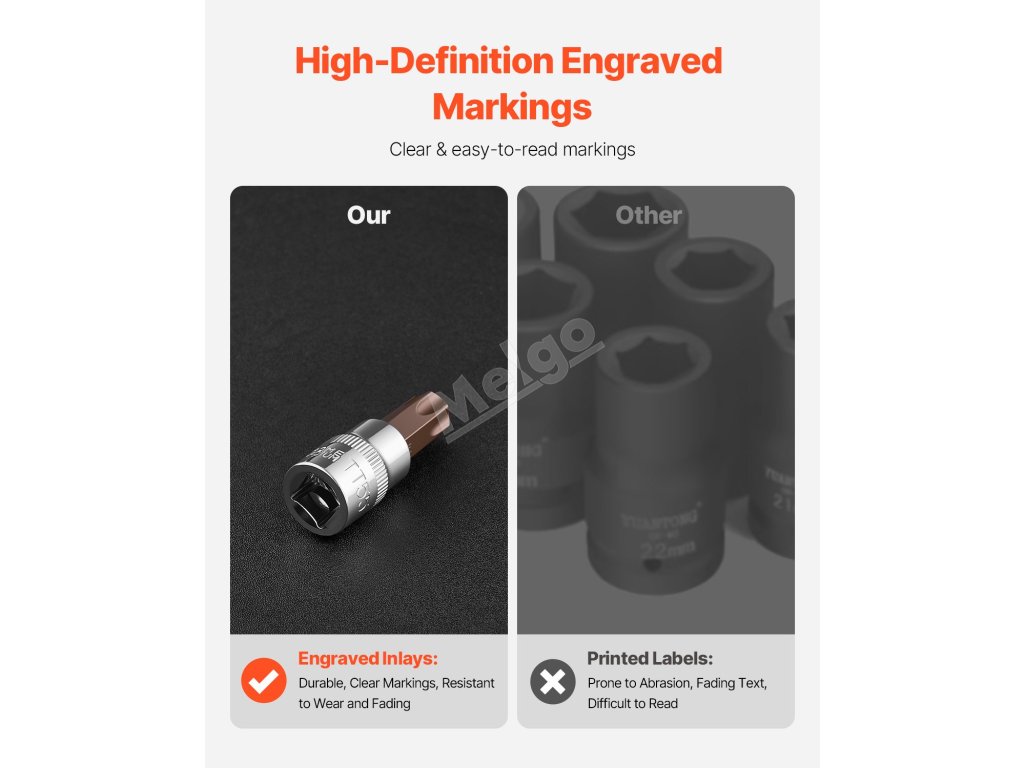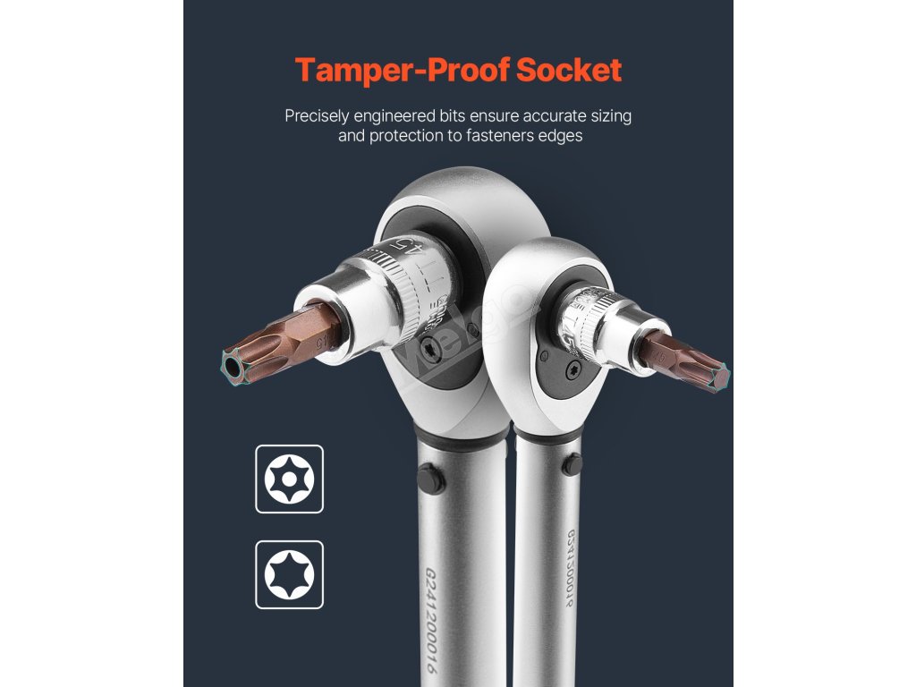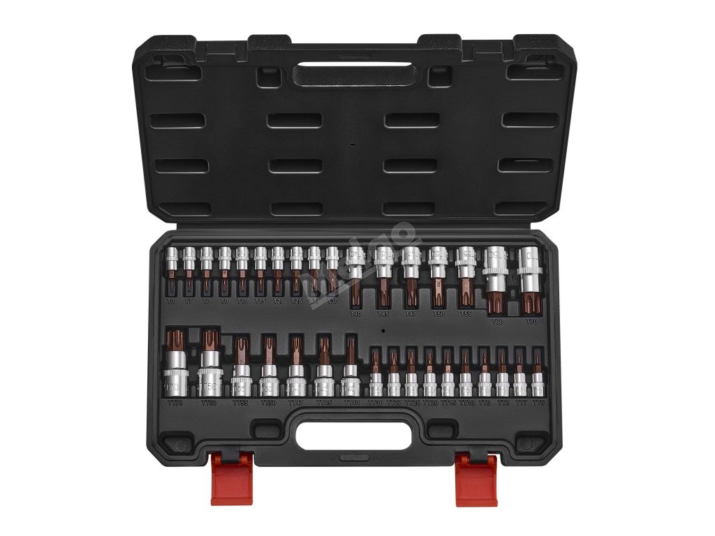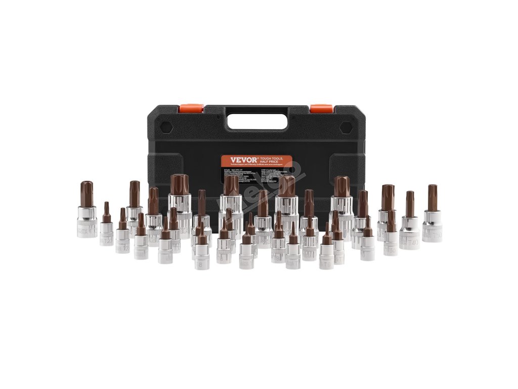 Sada nástrčných hlavic Torx je vyrobena z vysoce pevné legované oceli a je navržena tak, aby se při použití nelámala, což snižuje riziko nehod při opravách. Povrchová úprava bitů, vytvořená tak, aby odolávala korozi, zajišťuje pevný úchop a zabraňuje prokluzování při použití vysokého točivého momentu.