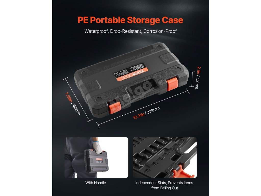 Už se nemusíte obávat náhodných pádů nebo rozsypaných nástrojů. Odolné PE pouzdro je opatřeno bezpečnými otvory pro každou bitovou zásuvku, které je udrží pevně na místě a zabrání jejich ztrátě nebo poškození. Jeho kompaktní design zajišťuje snadné přenášení a pohodlné skladování doma nebo na cestách.