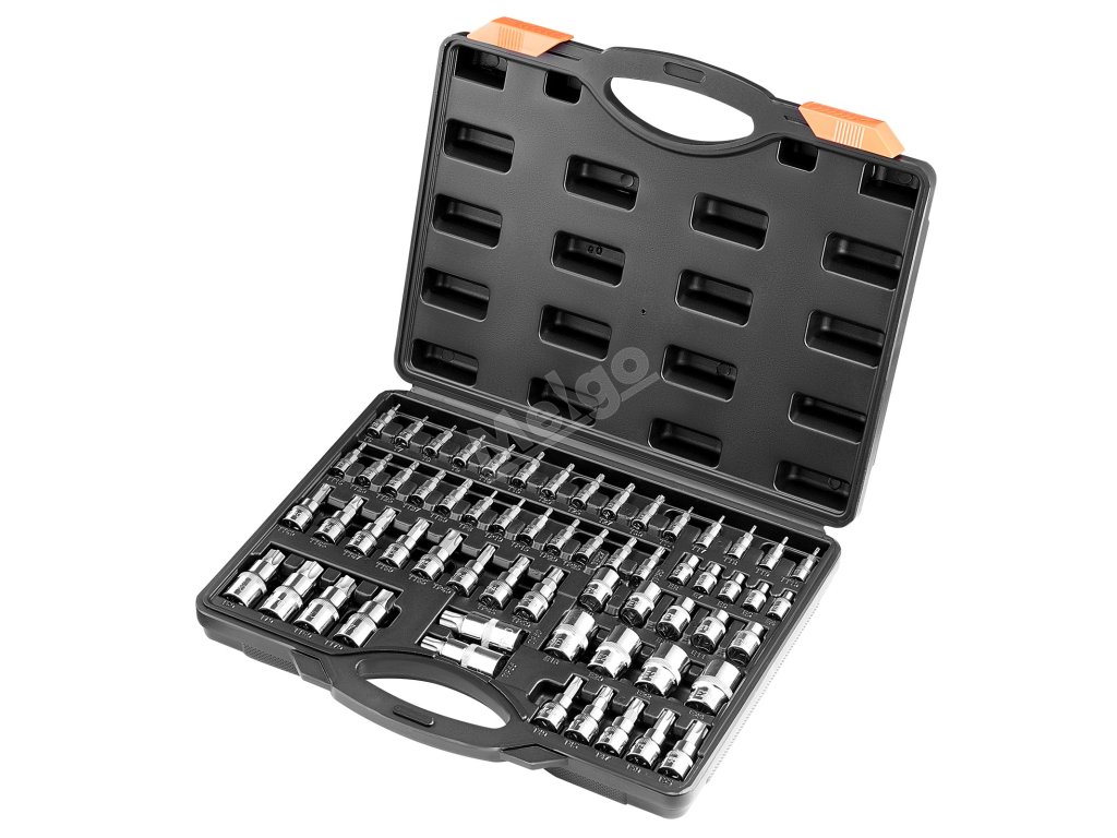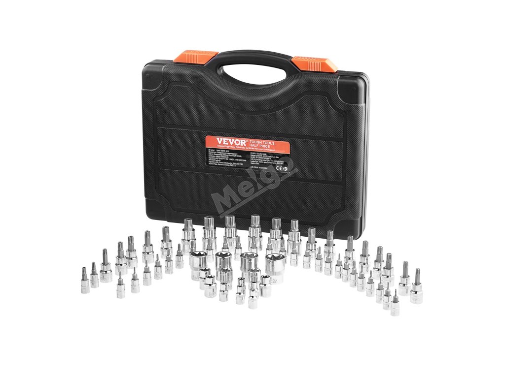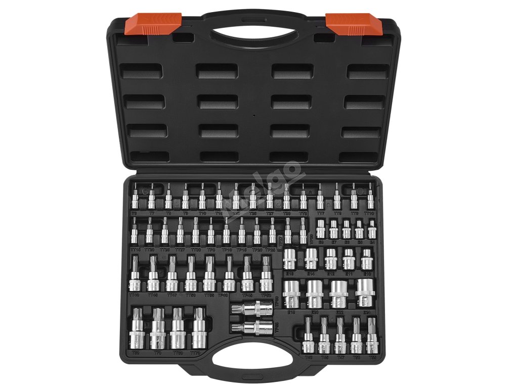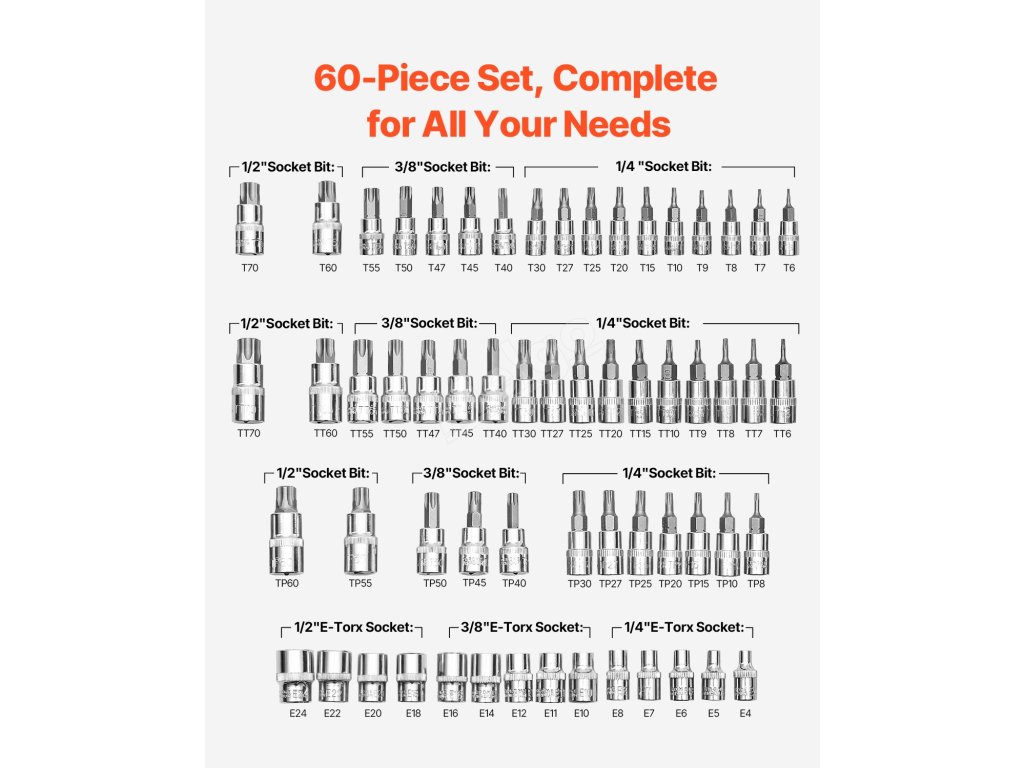 Sada Torx bitů a vnějších hlavic 60 dílů T6–T70, 1/4,3/8,1/2 in