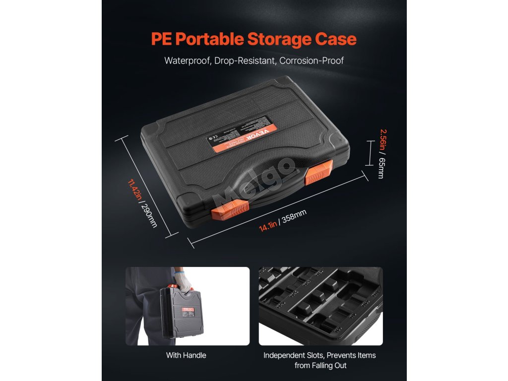 Už se nemusíte obávat náhodných pádů nebo rozsypaných nástrojů. Odolné PE pouzdro je opatřeno bezpečnými otvory pro každou bitovou zásuvku, které je udrží pevně na místě a zabrání jejich ztrátě nebo poškození. Jeho kompaktní design zajišťuje snadné přenášení a pohodlné skladování doma nebo na cestách.