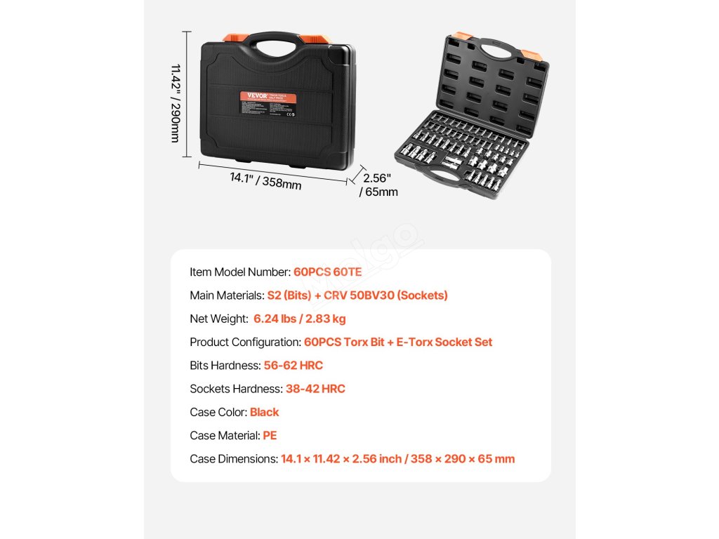 | Konfigurace produktu | sada bitů Torx 60 ks + sada nástrčných hlavic E-Torx |