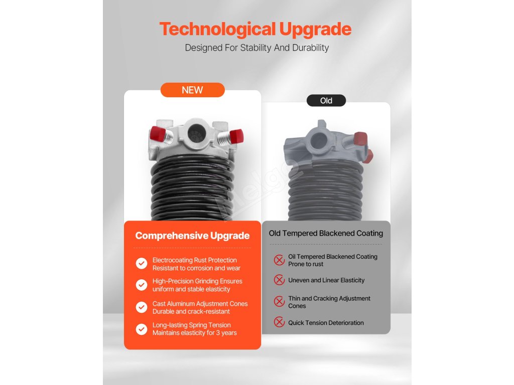 Poznejte rozdíl díky profesionálně tepelně zpracovaným závitům z pružinové oceli a hliníkovým kuželům, které jsou navrženy pro maximální pevnost a odolnost. Díky zvýšené odolnosti proti únavě poskytuje garážová pružina životnost více než 16 000 cyklů, což odpovídá zachování stabilní pružnosti po dobu 3 let.