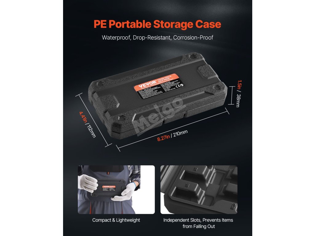 Už se nemusíte obávat náhodných pádů nebo rozsypaných nástrojů. Robustní PE úložný kufřík má bezpečné otvory pro každou bitovou zásuvku, které je pevně drží na místě a zabraňují jejich ztrátě nebo poškození. Jeho kompaktní design zajišťuje snadné přenášení a pohodlné skladování doma nebo na cestách.