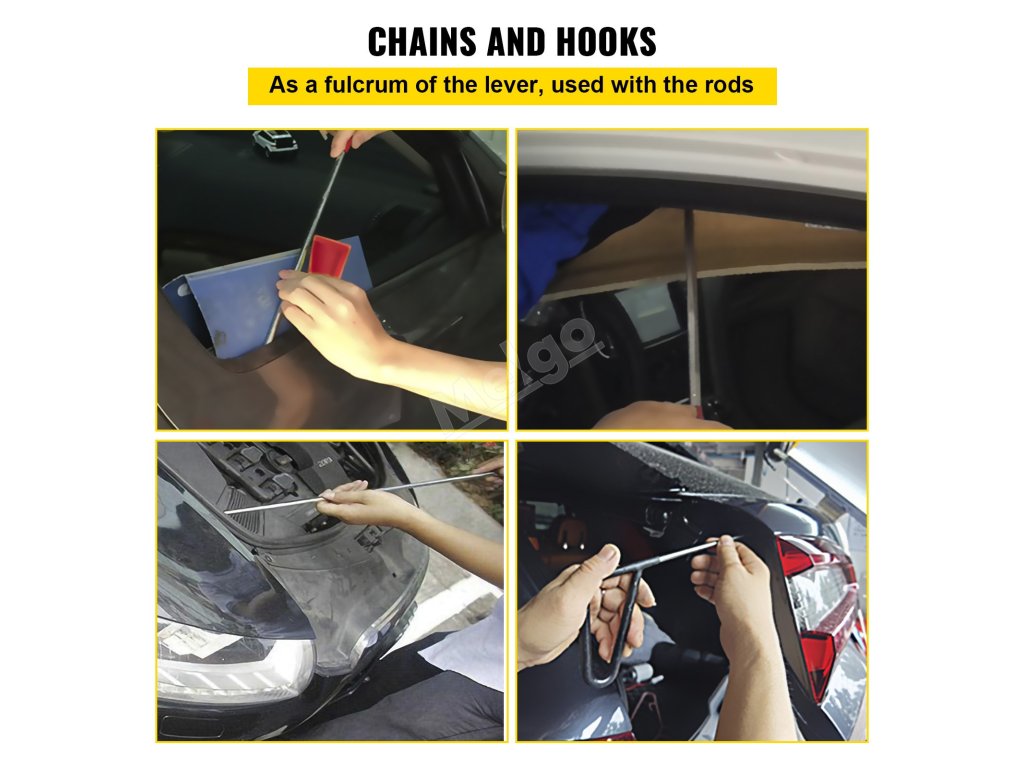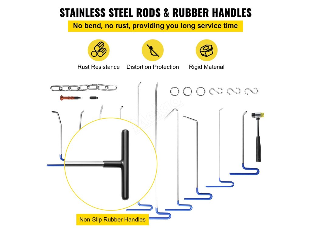 Kombinací háku ve tvaru písmene S a háku ve tvaru písmene O vytvoříte opěrný bod pro bezproblémové řešení nepříjemných promáčklin nebo ohybů. Snadné použití. Lze použít se sadou na opravu promáčklin, rychleji opravíte promáčkliny na autě.
