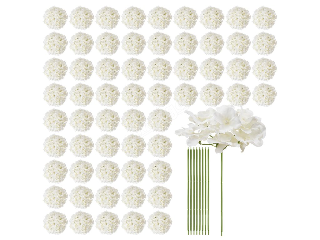 Sada obsahuje 105 bielych umelých hortenzií, z ktorých každá má 27 okvetných lístkov pre realistický kvet. Kvety sú 9,8" vysoké so 6" hlavami, vyrobené z hodvábu, ktorý nevybledne. Ohybné stonky umožňujú jednoduché ohýbanie a zastrihávanie pre domácich majstrov. Nenáročné na údržbu - stačí oprášiť, aby boli krásne. Ideálne na svadby, večierky a domáce dekorácie.