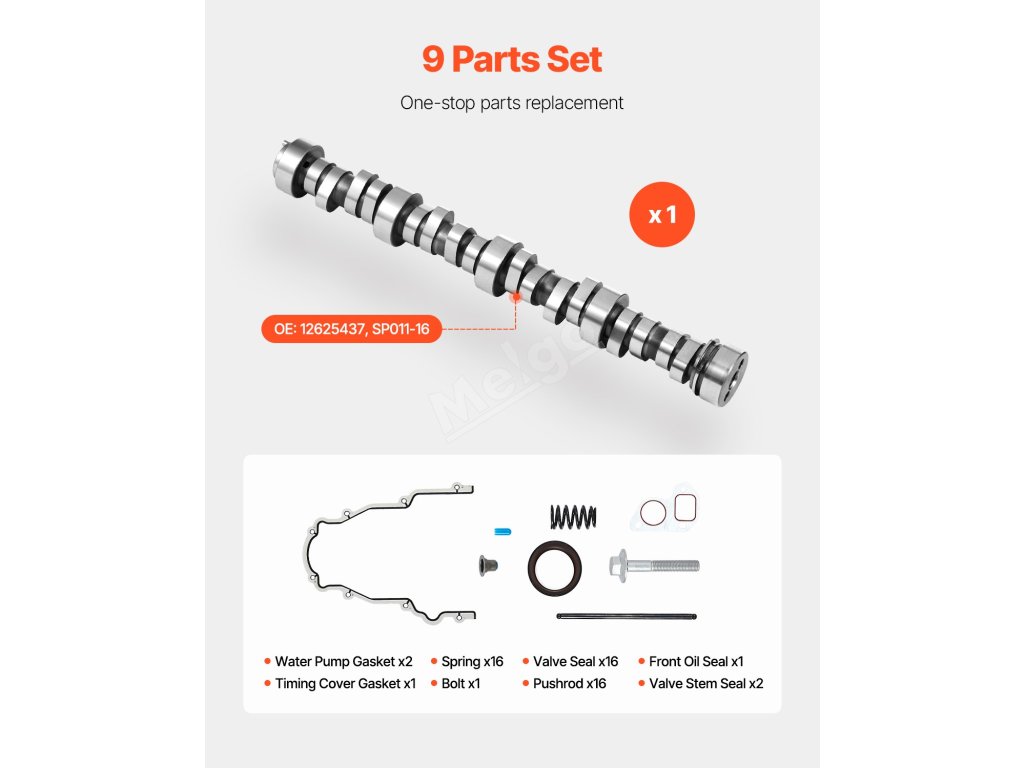 Vzhľadom na možné problémy s inými komponentmi počas procesu výmeny vačkového hriadeľa poskytuje táto súprava vačiek motora kompletnú sadu dielov na zlepšenie vášho plánu výmeny. Všetky diely spĺňajú normy OEM.