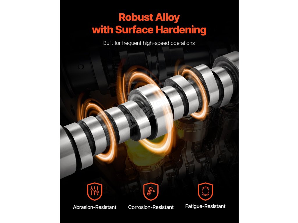 Vačkový hriadeľ je vyrobený z vysokokvalitnej sivej liatiny, ktorá ponúka samomazné vlastnosti, ktoré znižujú trenie a predlžujú životnosť. Proces kalenia povrchu zvyšuje odolnosť proti opotrebovaniu, čím sa minimalizuje mechanické poškodenie spôsobené poškriabaním, nárazmi a inými faktormi.