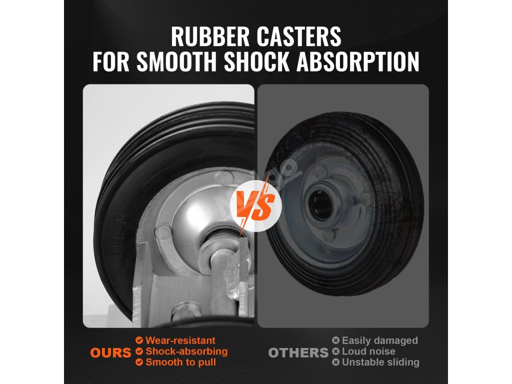 Vysoce kvalitní gumová kolečka jsou měkká a pružná, což účinně snižuje tření o zem během používání a zabraňuje poškrábání podlahy. Ať už se jedná o trávu, asfalt, beton nebo štěrk, kolečka zajišťují hladký pohyb na různých površích.