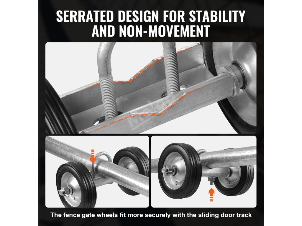 Tento rolovací rám je navržen pro různé velikosti rámů, takže je vhodný pro brány na dvůr, příjezdové brány, brány na farmy a skladové brány. Zajišťuje bezproblémovou instalaci a hladší posouvání. U často používaných posuvných bran snižuje přesné uchycení riziko zaseknutí, čímž šetří váš čas a námahu.