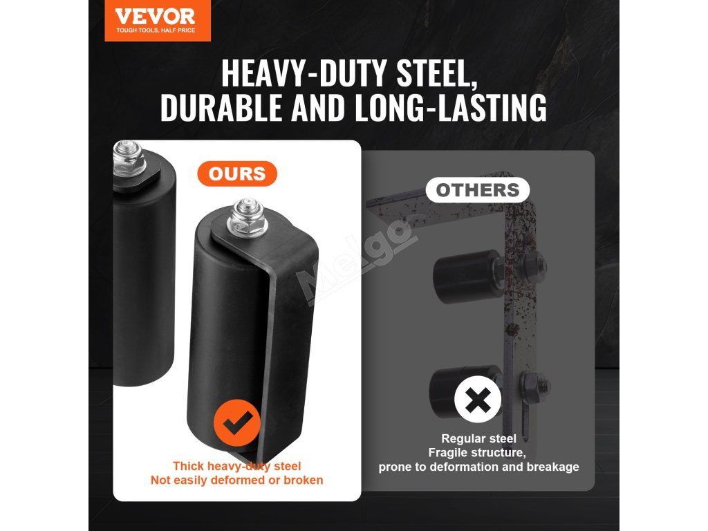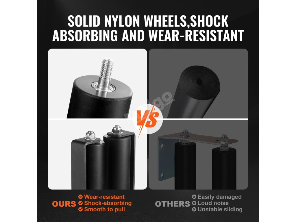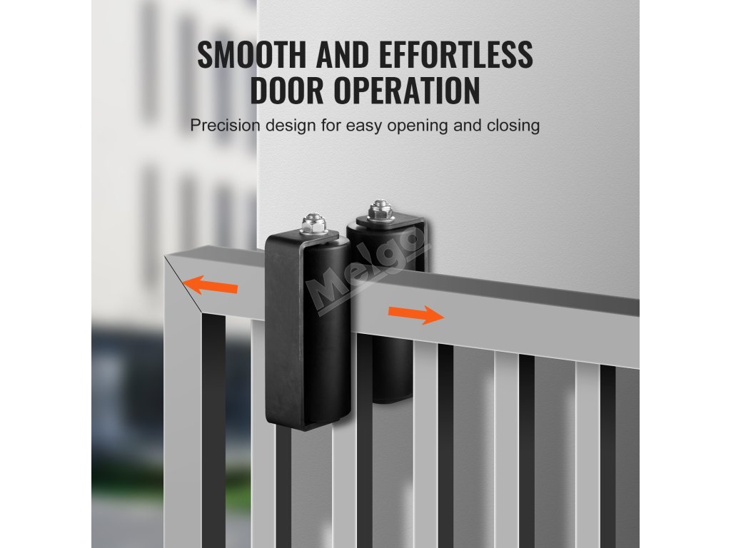 Vroubkovaná struktura zlepšuje souosost kol s rámem dveří a zajišťuje stabilitu i na šikmém nebo nerovném povrchu. Tato konstrukce zajišťuje konzistentní a bezpečný výkon a umožňuje vratovému systému bezpečně stát na místě a bez problémů fungovat.