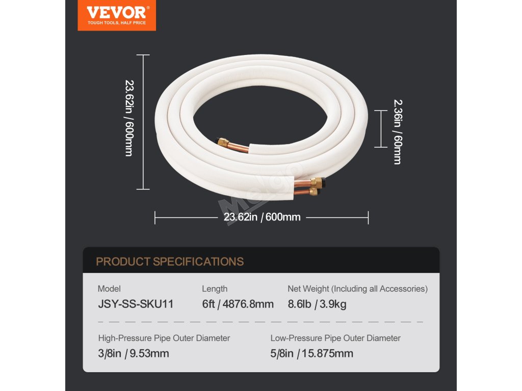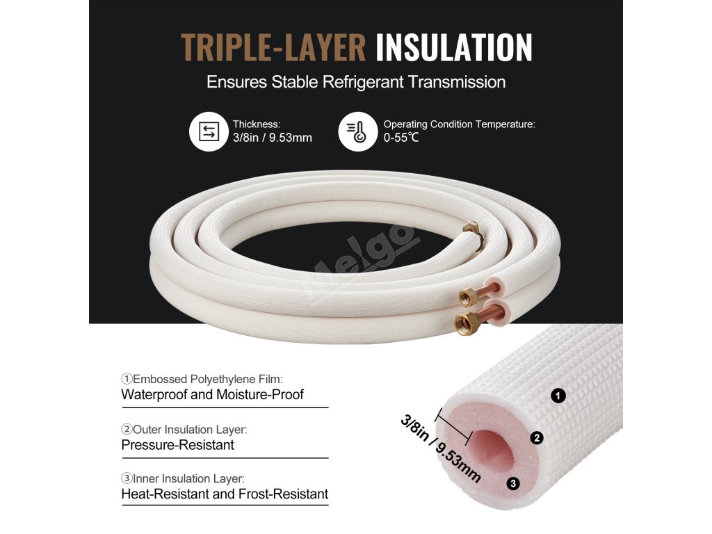 Pro lepší ochranu vnitřních měděných trubek používá VEVOR třívrstvé izolační materiály, které mají lepší izolační vlastnosti než běžné dvouvrstvé izolační materiály. Reliéfní povrchová úprava zvyšuje odolnost a představuje nepopiratelnou pevnost.