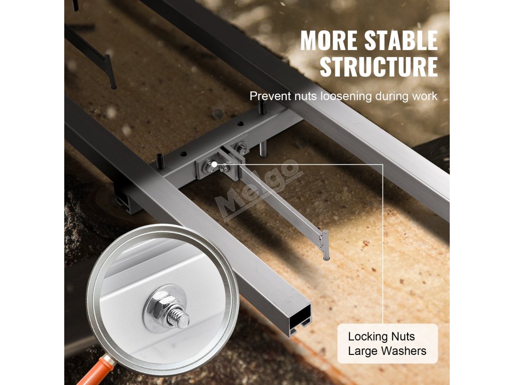 Matice proti uvolnění a velké podložky vytvářejí celkově stabilnější konstrukci a zabraňují případným problémům s poruchami řezání způsobenými uvolněnými maticemi. Vyztuženo 4 dalšími příčníky na obou stranách pro zlepšení celkové konstrukce.