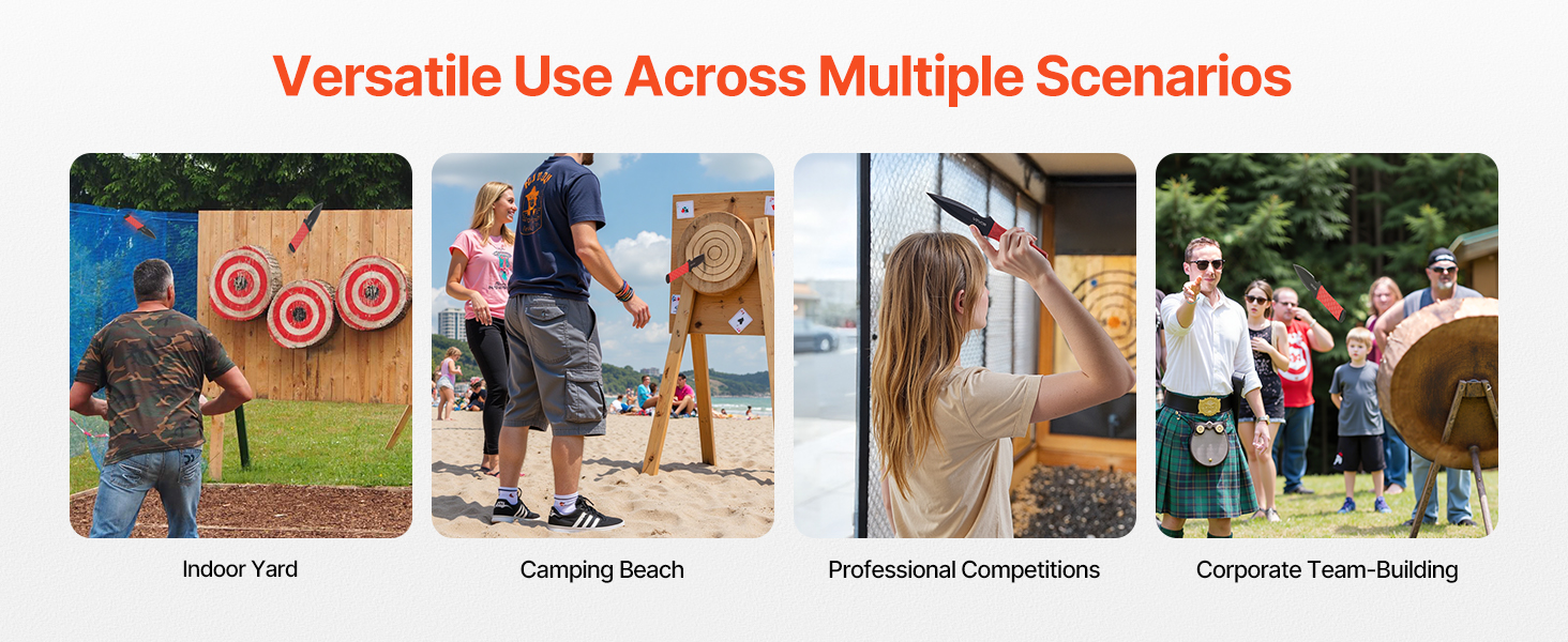 Tato multifunkční sada vrhacích nožů je určena pro domácí zábavu a outdoorové nadšence. Vyznačuje se vyváženým rozložením hmotnosti, odolnými materiály a přenosností - je ideální pro přesné hody a zábavné interakce na večírcích, soutěžích a venkovních akcích.