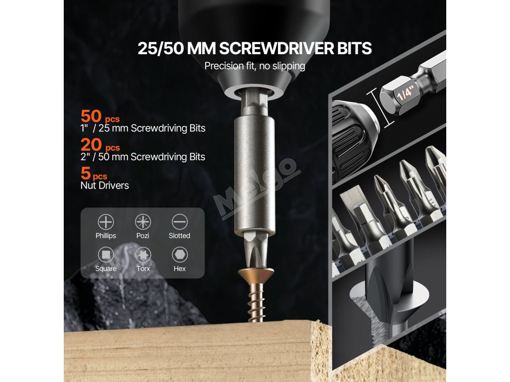 Tato sada šroubovacích bitů si hravě poradí s běžnými šrouby a maticemi. Její silné bity CR-V poskytují dlouhou životnost a zabraňují prokluzování, čímž zajišťují hladký a spolehlivý výkon.