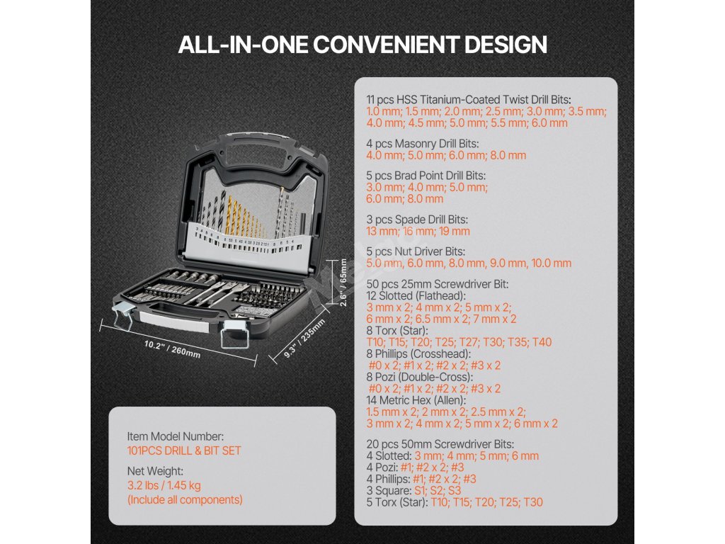 Efektivní a kompletní 101dílná sada šroubováků a vrtaček VEVOR