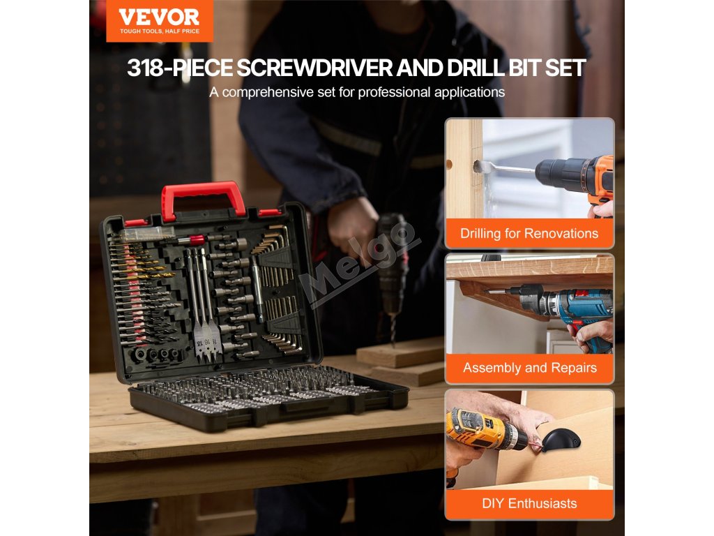 VEVOR 318dílná sada šroubováků a vrtaček, účinná a kompletní