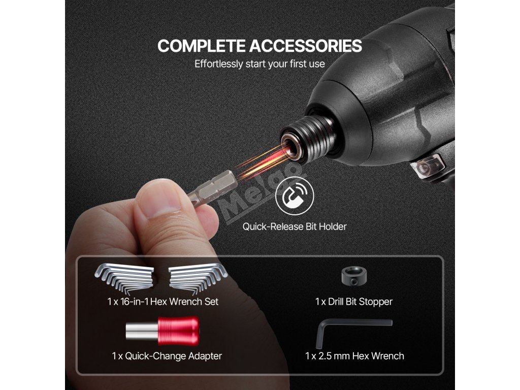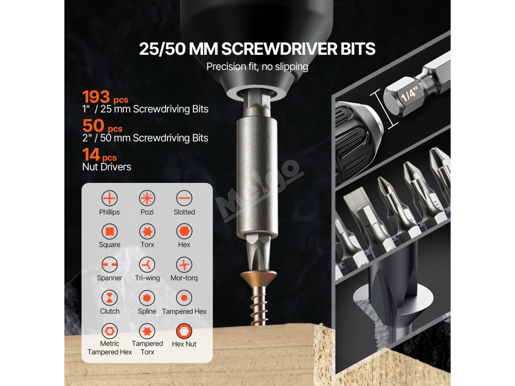 Tato sada šroubovacích bitů si hravě poradí s běžnými šrouby a maticemi. Její silné bity CR-V poskytují dlouhou životnost a zabraňují prokluzování, čímž zajišťují hladký a spolehlivý výkon.