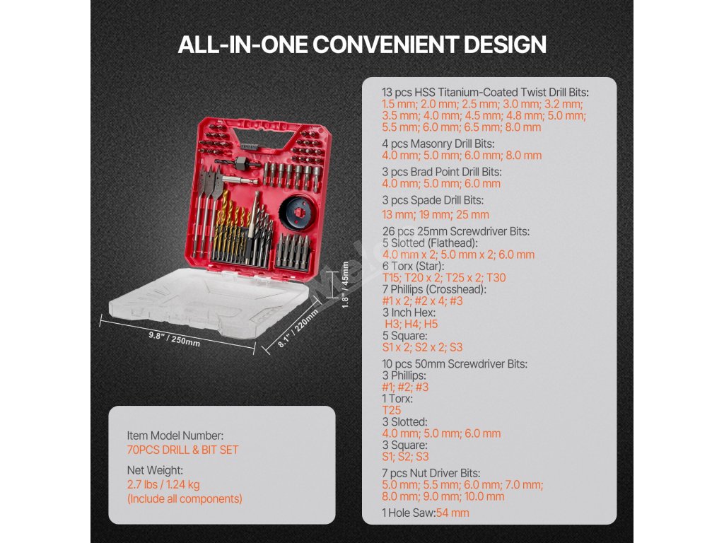 VEVOR 70dílná sada šroubováků a vrtaček, účinná a kompletní