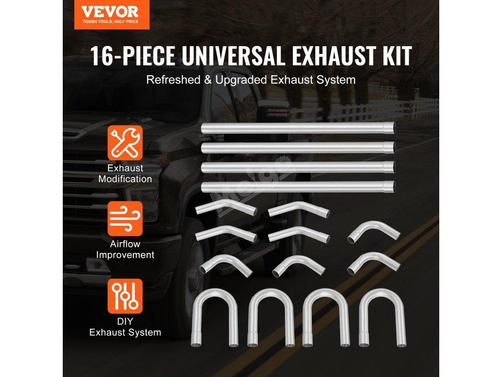 Táto 16-dielna univerzálna súprava automobilových výfukov obsahuje všetky potrebné rúrky na úpravu alebo opravu výfukového systému vášho vozidla, vďaka čomu je vhodná na projekty výfukov "urob si sám". Prispôsobte si systém na základe špecifikácií vozidla a osobných preferencií, aby ste dosiahli optimálny výkon a zvuk.
