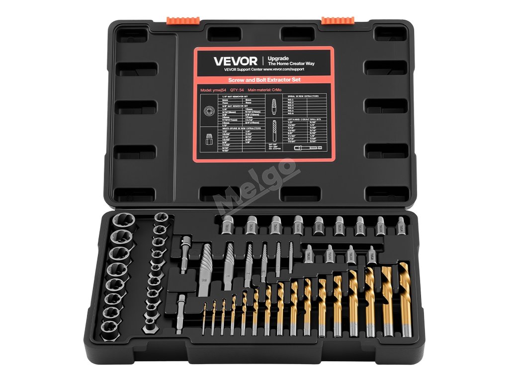 Sada vytahovačů šroubů a vrtáků, 54 ks, Cr-Mo, s adaptéry