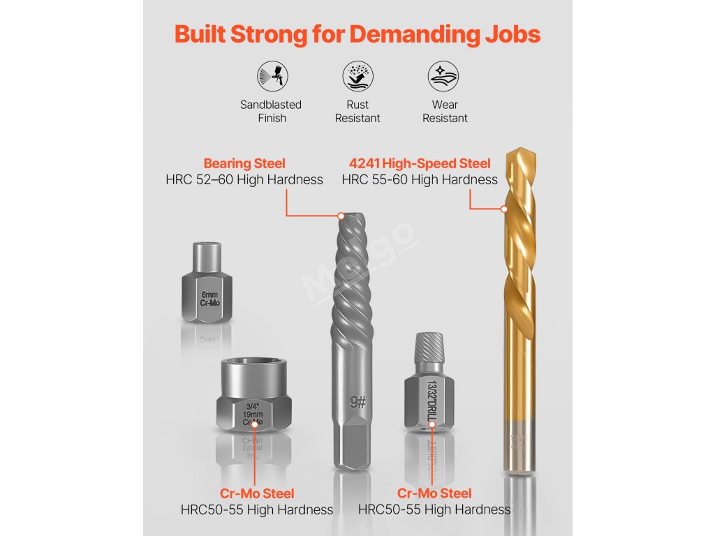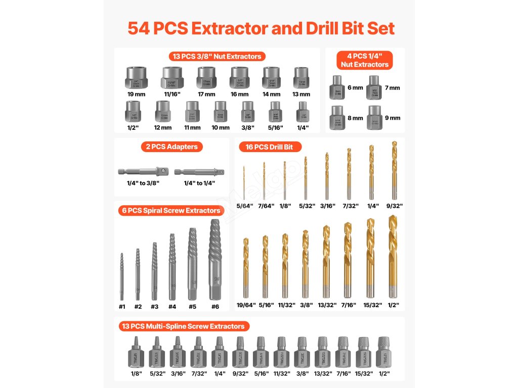Tato komplexní sada pro vytahování poškozených šroubů a vrtáků vám pomůže rychleji dokončit práci - od poškozených šroubů po zaseknuté šrouby.