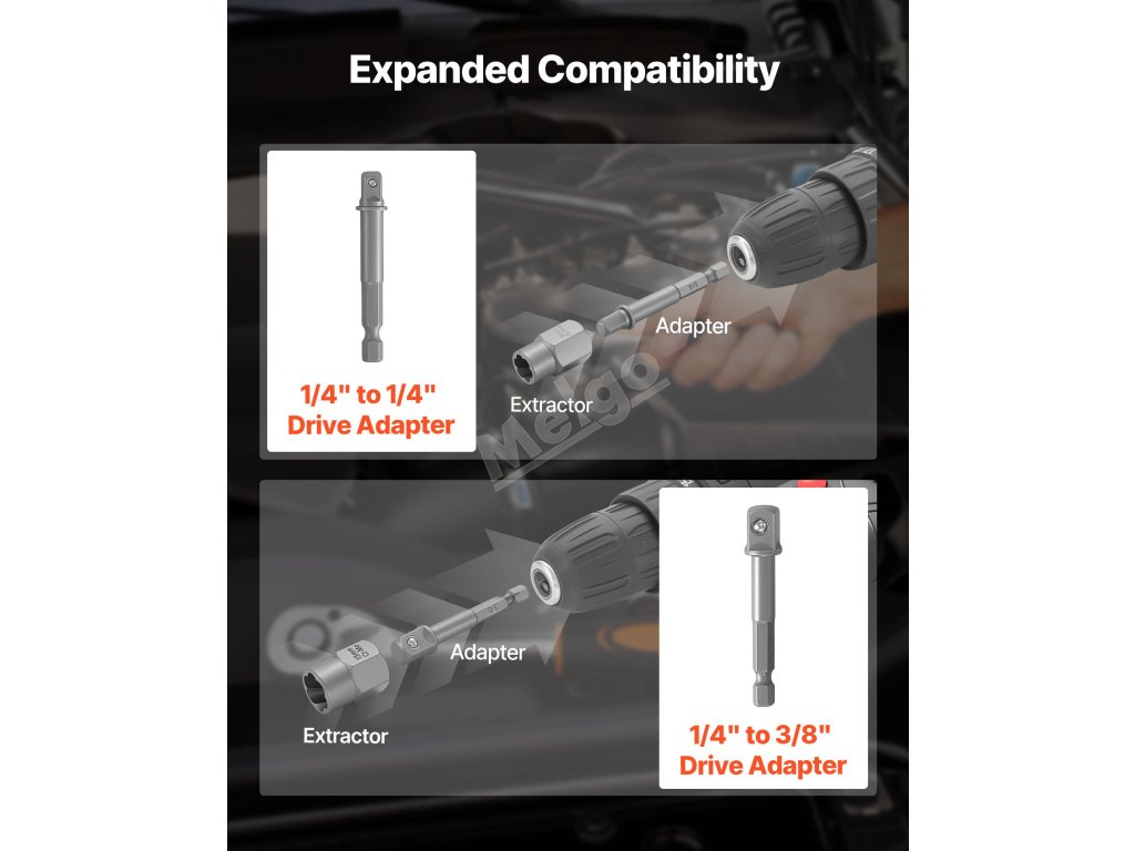 Naše sada stahováků šroubů je navržena tak, aby ji bylo možné snadno integrovat s běžným ručním i elektrickým nářadím, takže se můžete pustit do práce se svým oblíbeným vybavením.