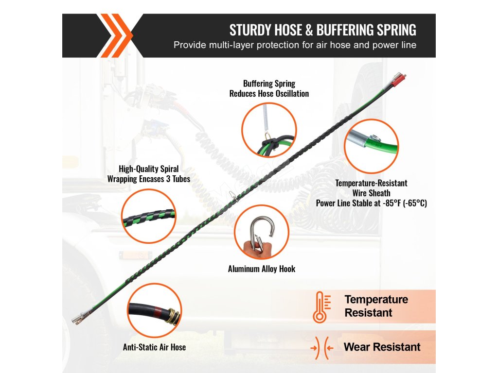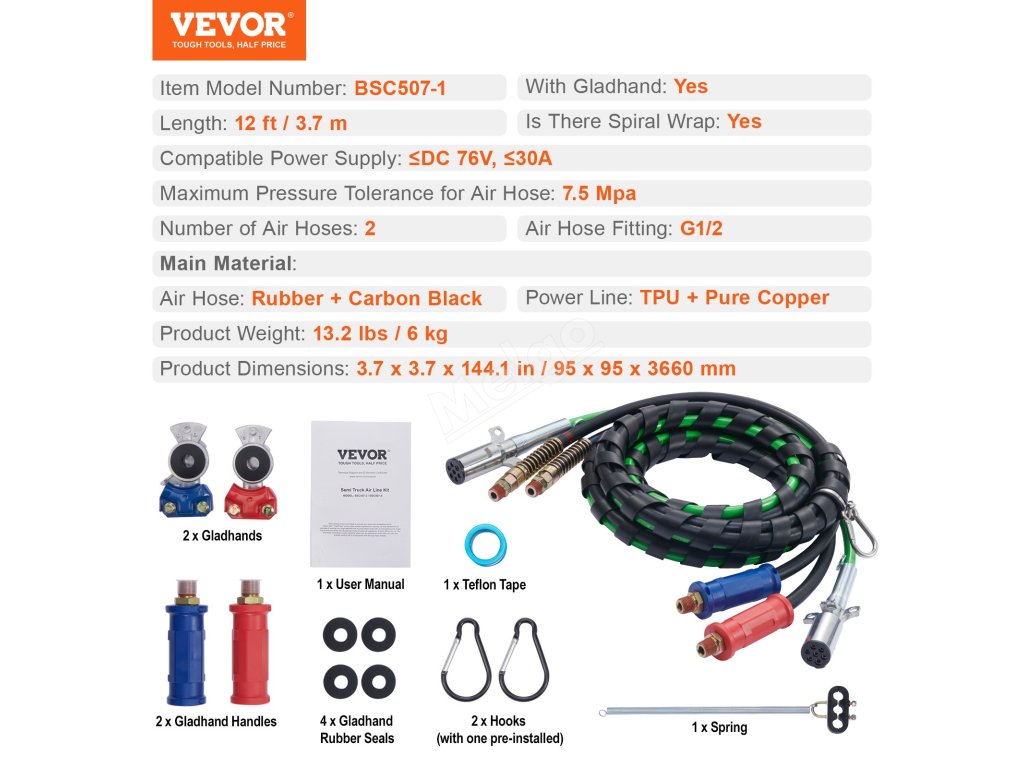 Sada vzduchových vedení 12FT, 3-in-1 hadice, 2 ks, 7-way, 4 těsnění