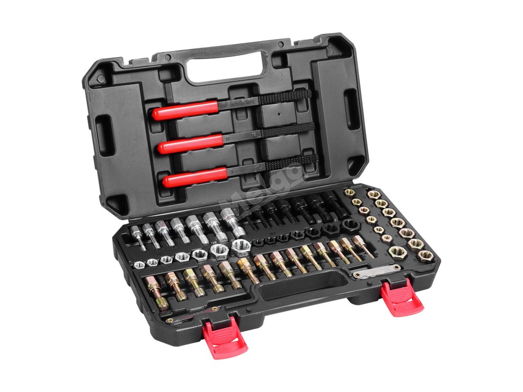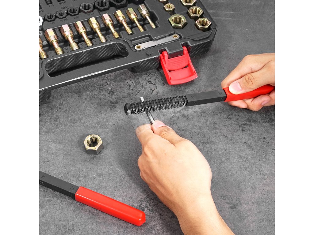 Tato sada nástrojů pro obnovu závitů obsahuje kompletní sadu příslušenství pro obnovu stržených, zkřížených nebo poškozených vnitřních závitů různých velikostí. Upřednostňuje uživatelský komfort, zjednodušuje složité opravy a nabízí komplexní řešení, které urychlí a usnadní každou práci.