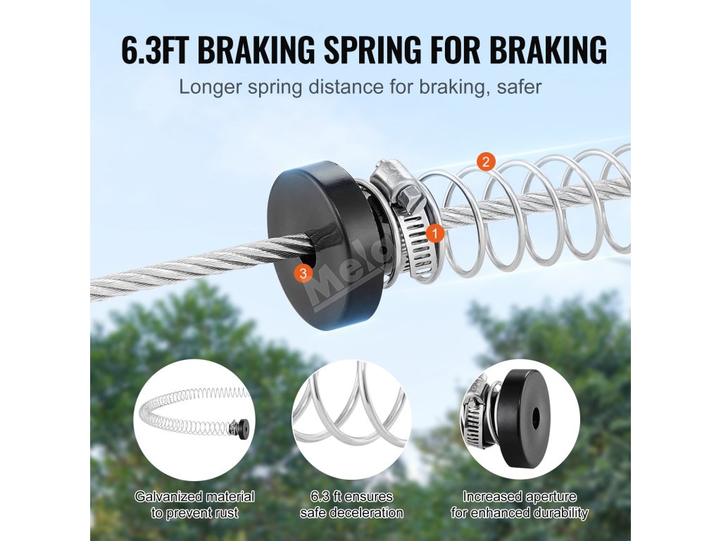 Náš systém pružinové brzdy je vyroben z nerezové oceli, která nabízí vyšší odolnost a životnost. Pružinová brzda účinně udržuje bezpečnou vzdálenost mezi dětmi a stromy a zajišťuje tak bezpečnost.