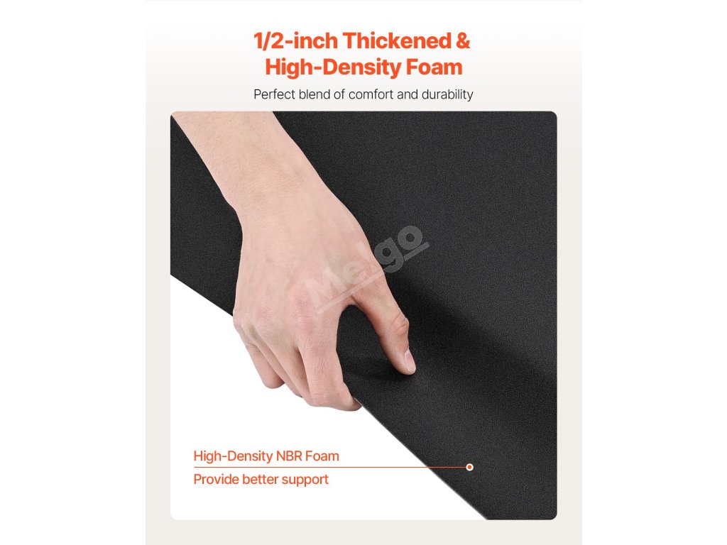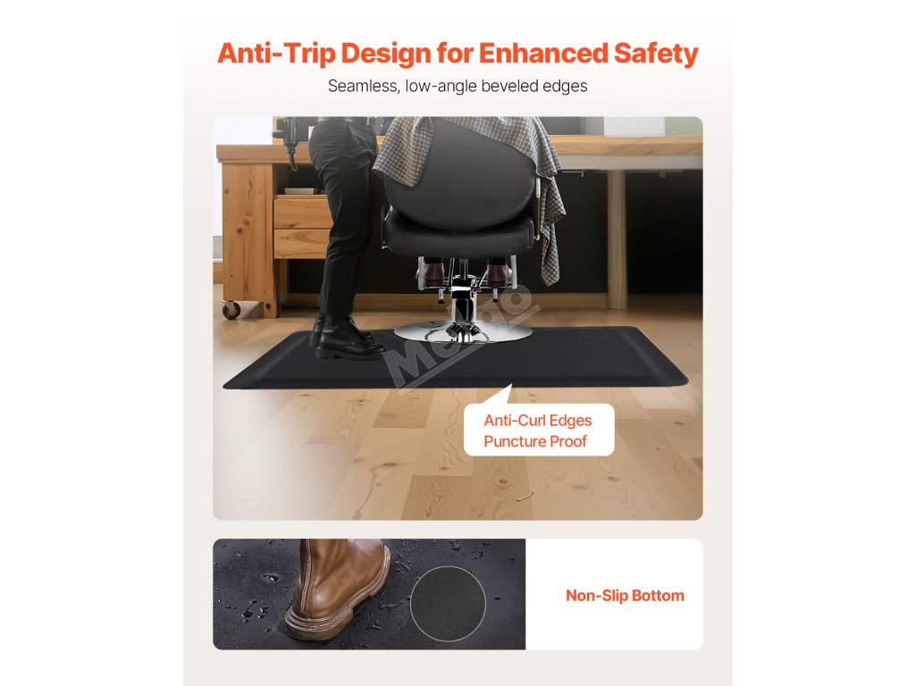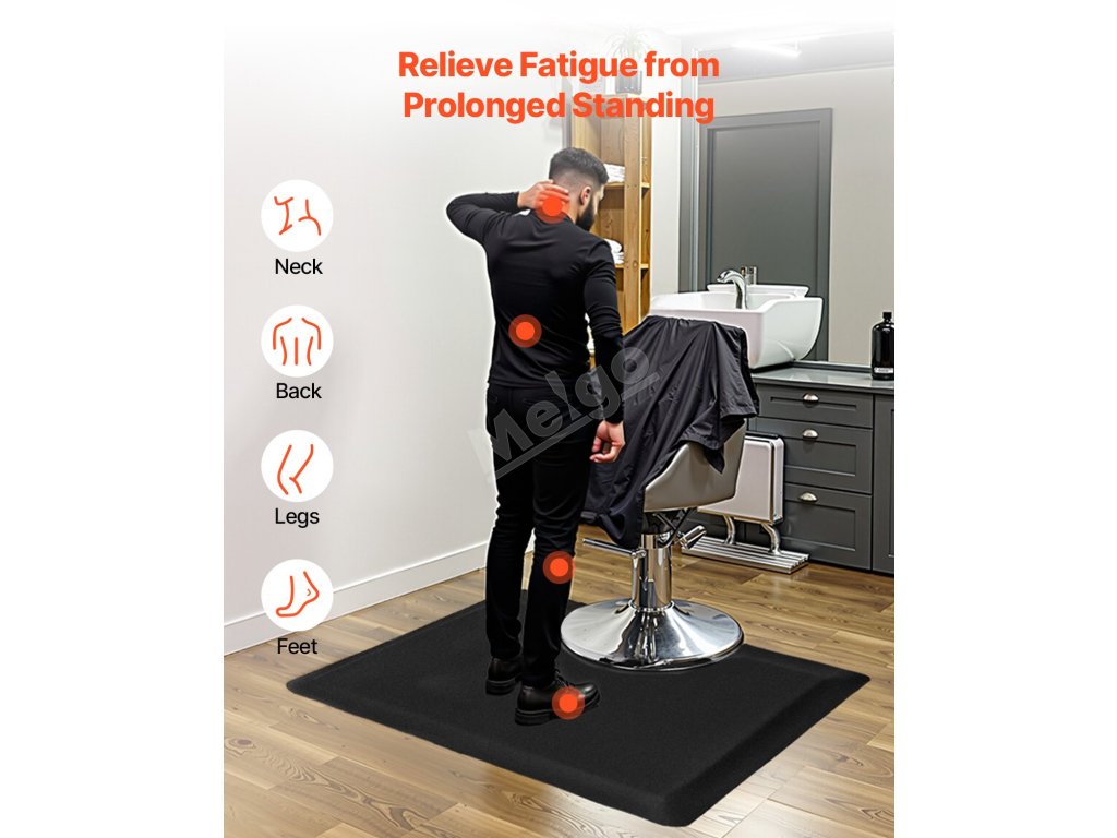Podložka do salonu VEVOR o rozměrech 1525 x 910 mm je navržena tak, aby poskytovala vynikající pohodlí a úlevu od únavy, zmírňovala bolesti zad, uvolňovala kolenní klouby a zmírňovala únavu nohou, čímž zvyšovala celkový pracovní komfort a efektivitu. Je odolná proti propíchnutí a zvlnění, zabraňuje uklouznutí, je trvanlivá a snadno se čistí.