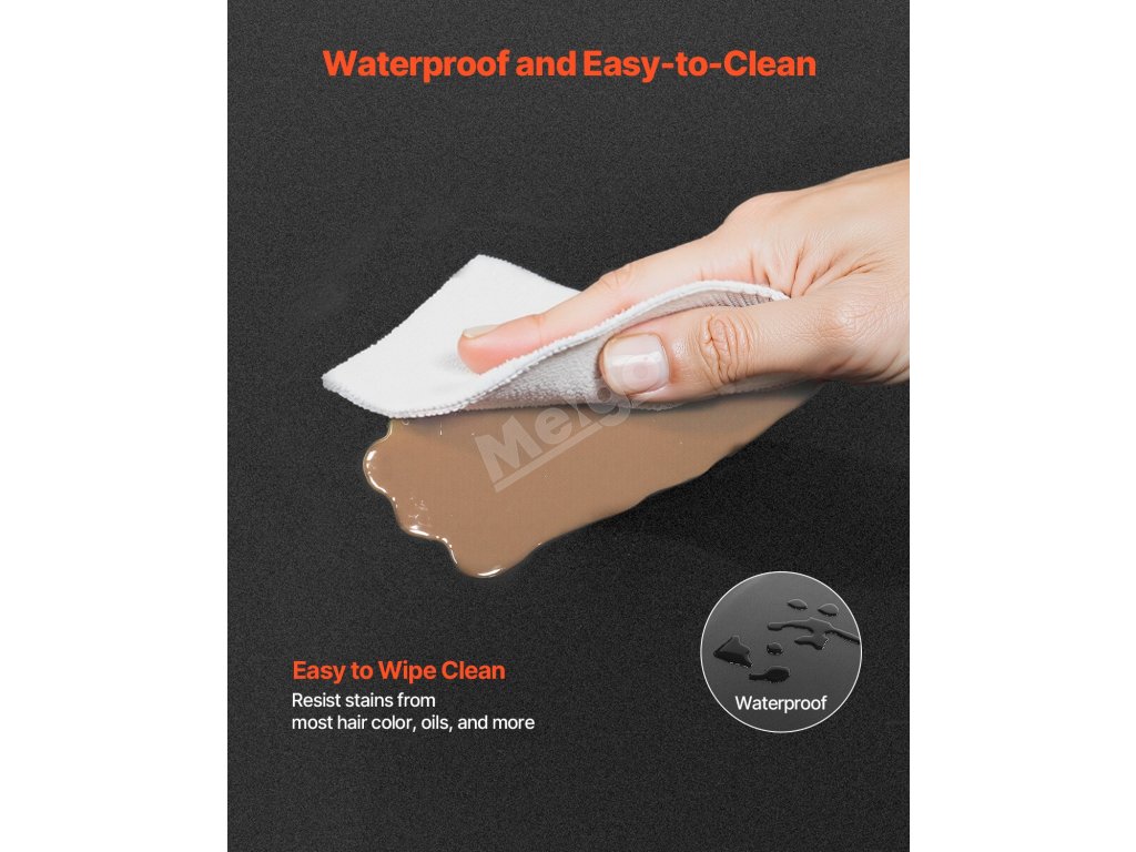 Povrch podložky je vyroben z PVC materiálu, je voděodolný a snadno se čistí. Je odolná vůči skvrnám od barvy na vlasy a oleje a lze ji snadno otřít. Díky zkoseným okrajům zabraňujícím uklouznutí, protiskluzovému dnu a odolnosti proti propíchnutí a pomačkání zaručuje bezpečnost a trvanlivost.