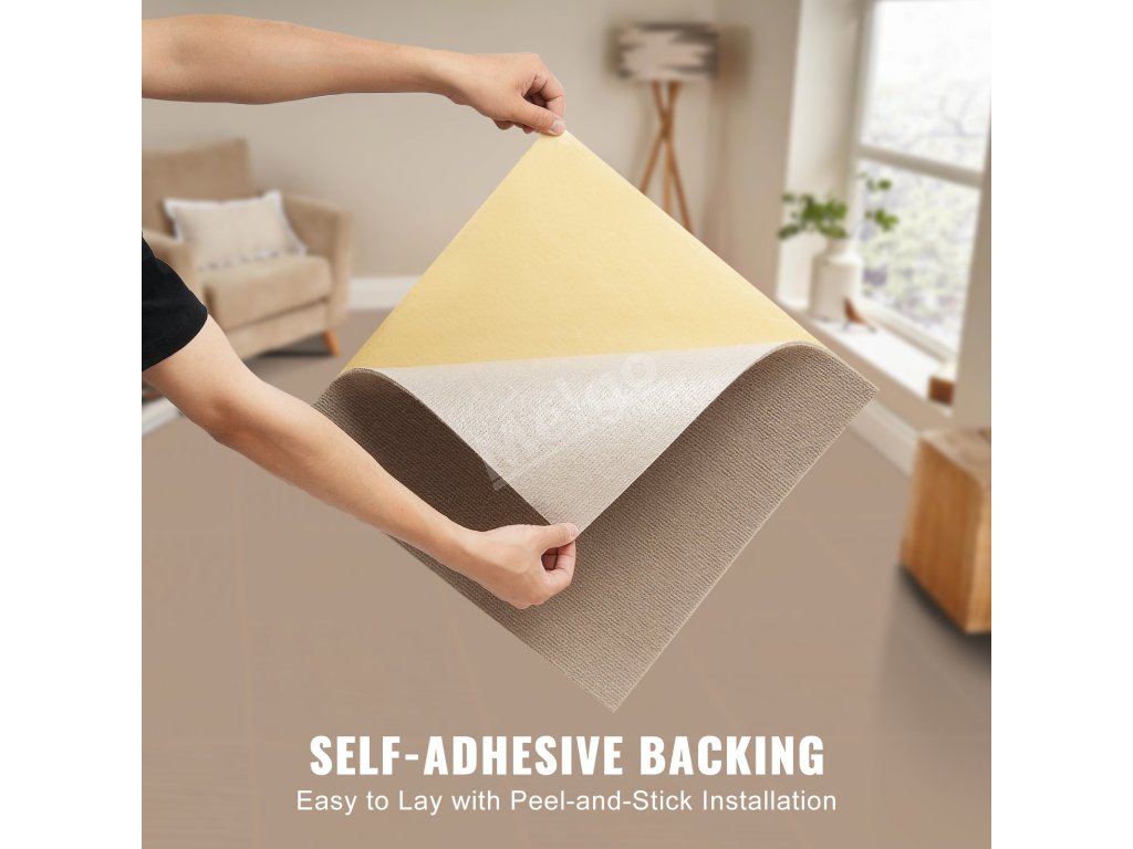 Samolepicí kobercové dlaždice 18”×18”, 10 ks, měkké, vnitřní, hnědé