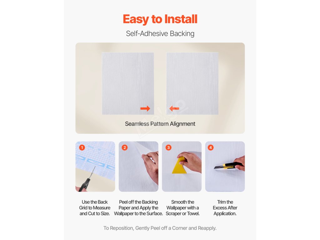 Vylepšený samolepicí kontaktní papír pevně drží, ale čistě se odlepuje, aniž by poškodil stěny. Nezůstávají po něm žádné zbytky lepidla. Ideální pro nájemníky, pokoje na kolejích a všechny, kteří mají rádi snadnou aktualizaci dekorací.