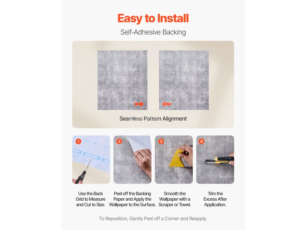 Vylepšený samolepicí kontaktní papír pevně drží, ale čistě se odlepuje, aniž by poškodil stěny. Nezůstávají po něm žádné zbytky lepidla. Ideální pro nájemníky, pokoje na kolejích a všechny, kteří mají rádi snadnou aktualizaci dekorací.