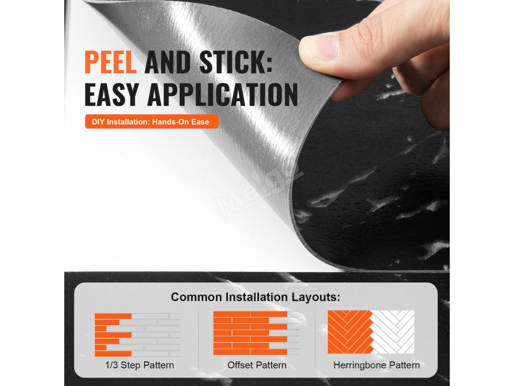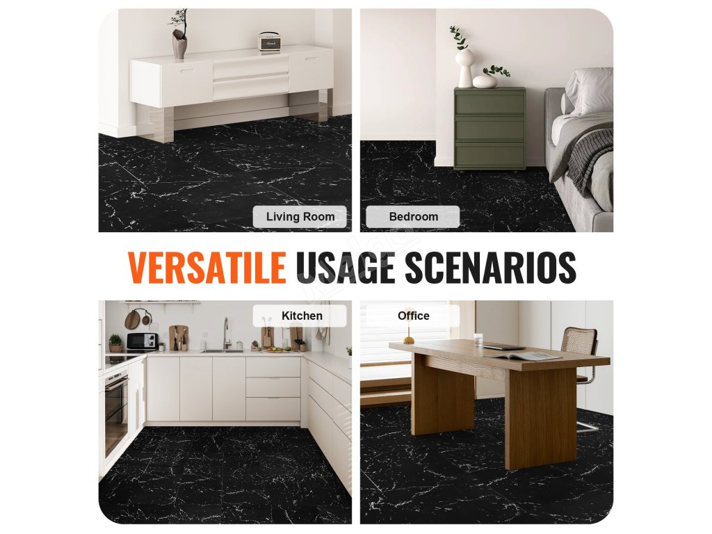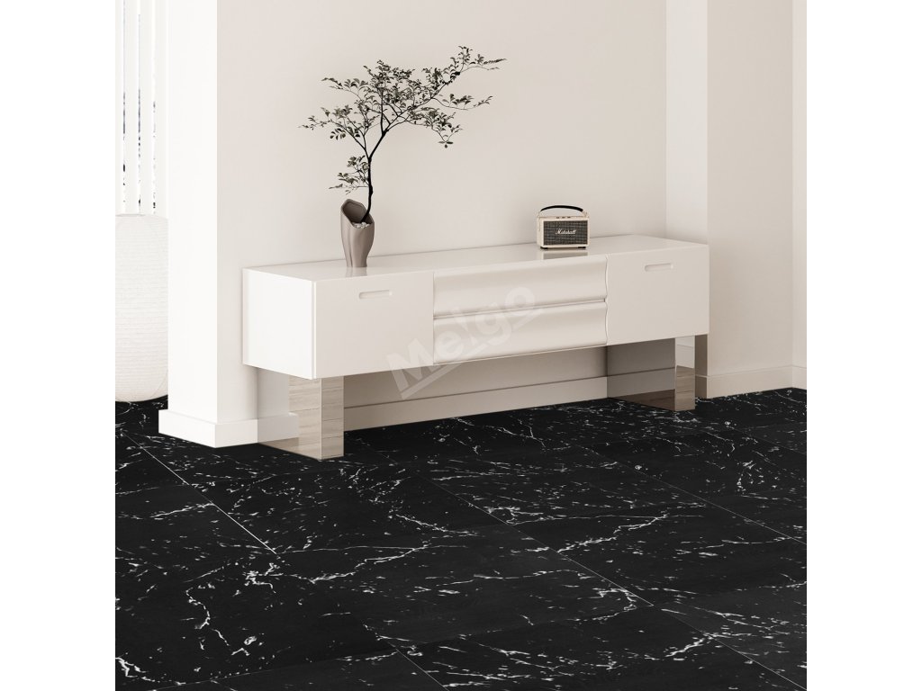 Samolepicí vinylové dlaždice 12×12 inch 50 ks 1.5mm černý mramor